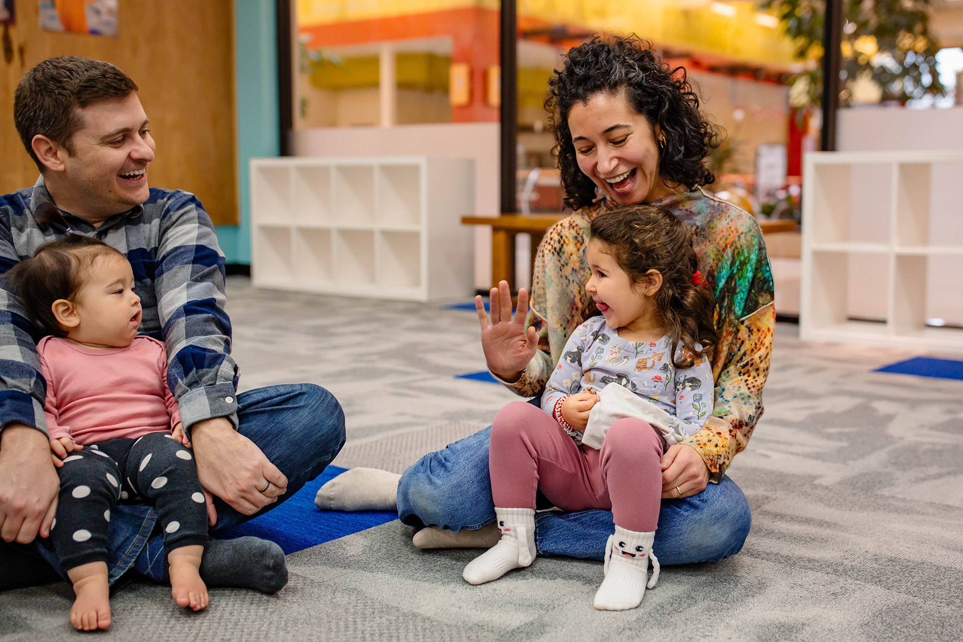 “¡Cuénteme más!”—“Tell me more!”—you say, so here goes: all enrolled families receive a CD plus digital access to the semester’s songs recorded in a mixture of Spanish and English, as well as the English-language songbook and a booklet with the Spanish lyrics. You’ll hear some new voices on the recordings, too: adult singer Mary Ellen Assue and child singers Tony Jimenez and Emily Cano. Everyone will have a great time in this Music Together family class that’s accessible to todo el mundo—everyone—regardless of your level of Spanish- or English-language proficiency.